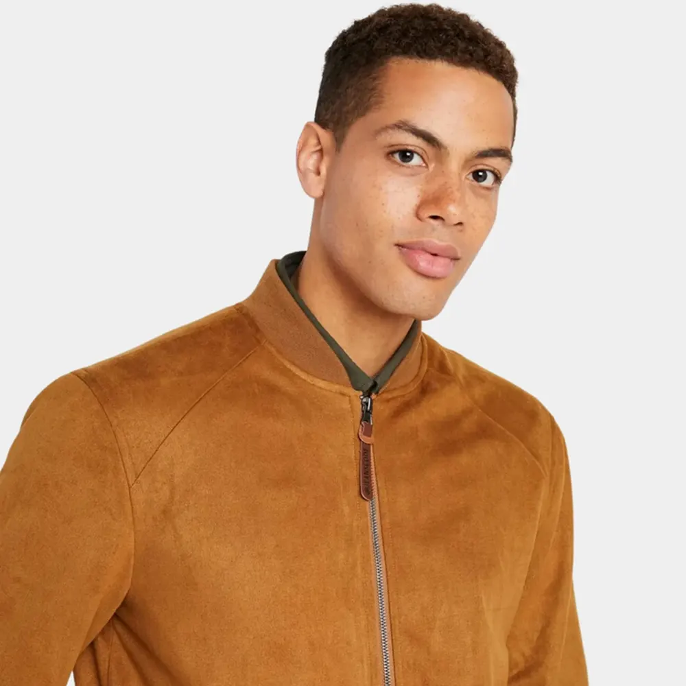 Product Info: Men’s Classic Brown Suede Bomber Jacket