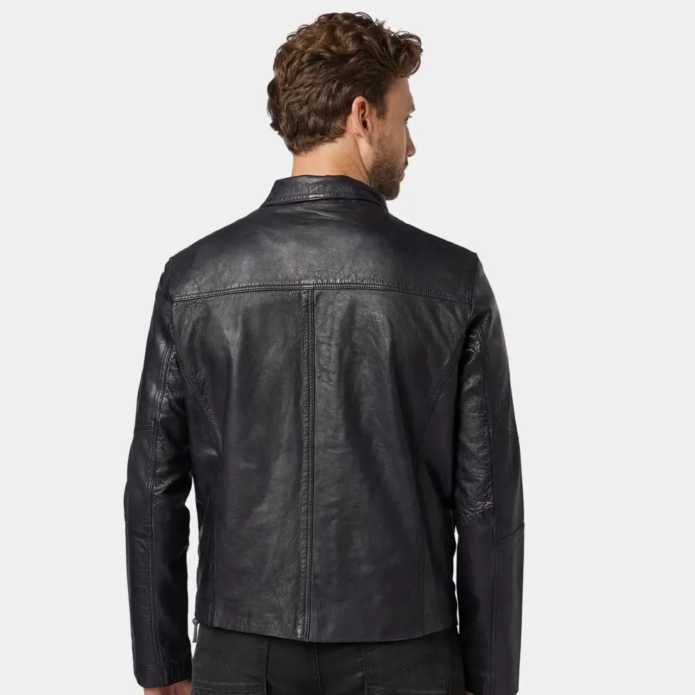 Tailored with a regular fit, the Men’s Classic Black Leather Trucker Jacket adapts well to different body types and style pairings. Throw it on with raw denim and boots for a classic American look or dress it down with joggers and sneakers for a modern, street-style finish.