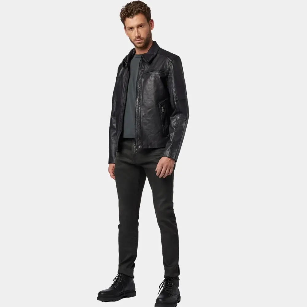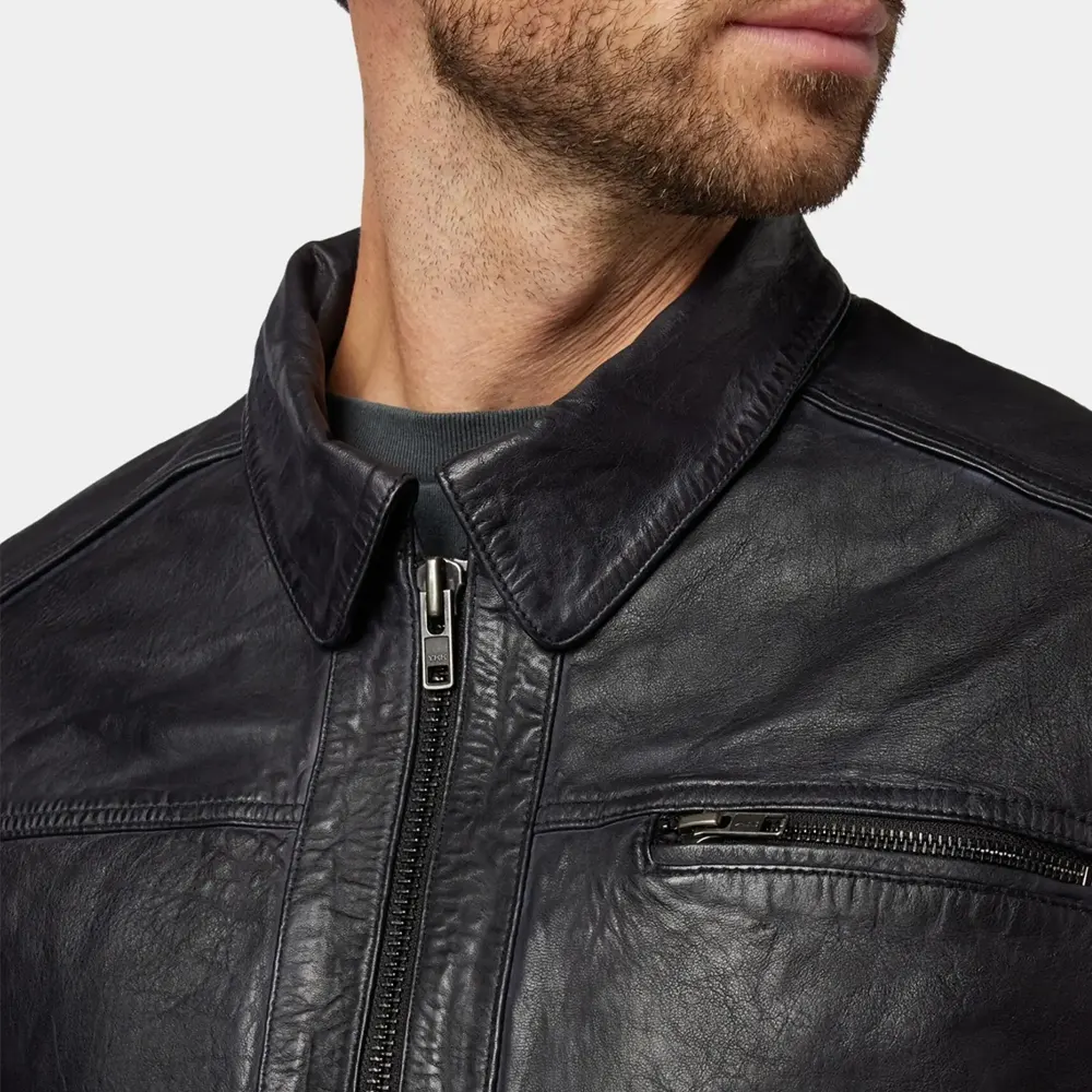 Inside the Jacket: Zippered Pockets Men’s Classic Black Leather Trucker Jacket