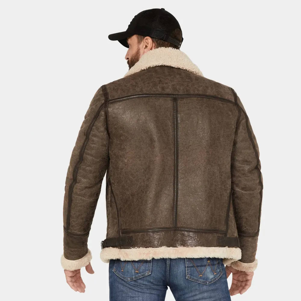 The Men’s Brown Shearling Aviator Leather Flight Jacket isn’t just outerwear—it’s a statement piece rooted in history, style, and function. Inspired by the legendary WWII pilot jackets, this timeless design combines rugged durability with modern-day comfort, making it a cold-weather essential for men who demand both performance and sophistication. Every detail, from the distressed brown leather exterior to the luxuriously soft cream shearling lining, speaks of premium craftsmanship meant to last for years. Whether you’re navigating the city streets, heading out for a weekend getaway, or braving the winter winds, this jacket ensures you do it in style.