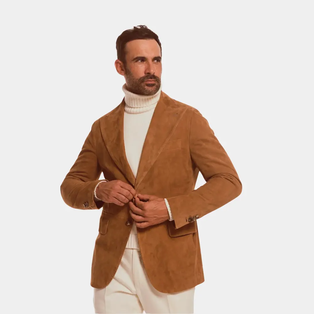 Jacket Details: Stylish Men’s Classic Brown Suede Leather Blazer