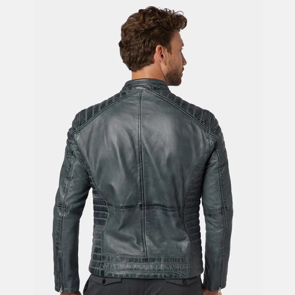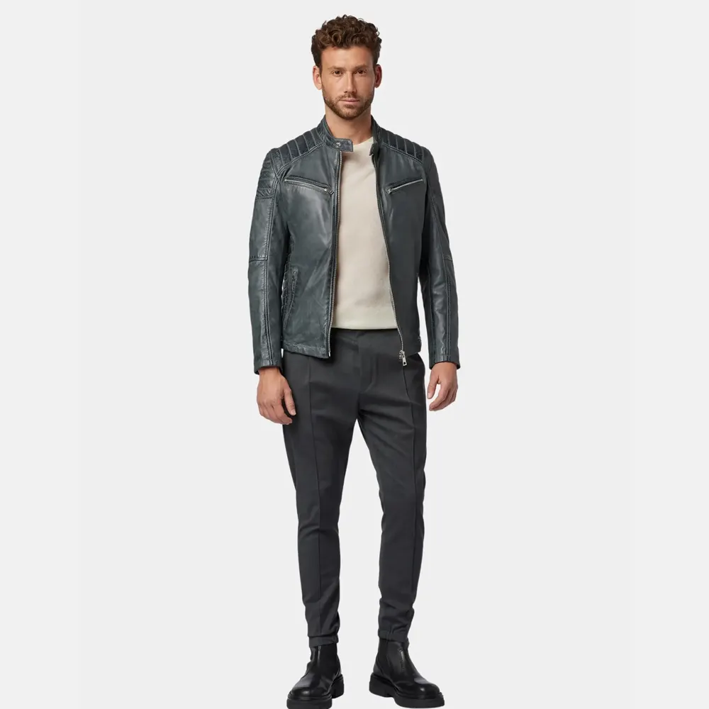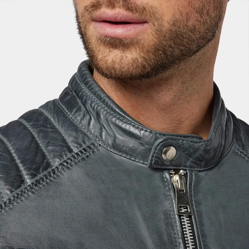 All About This Jacket: Men’s Classic Charcoal Gray Leather Cafe Racer Jacket