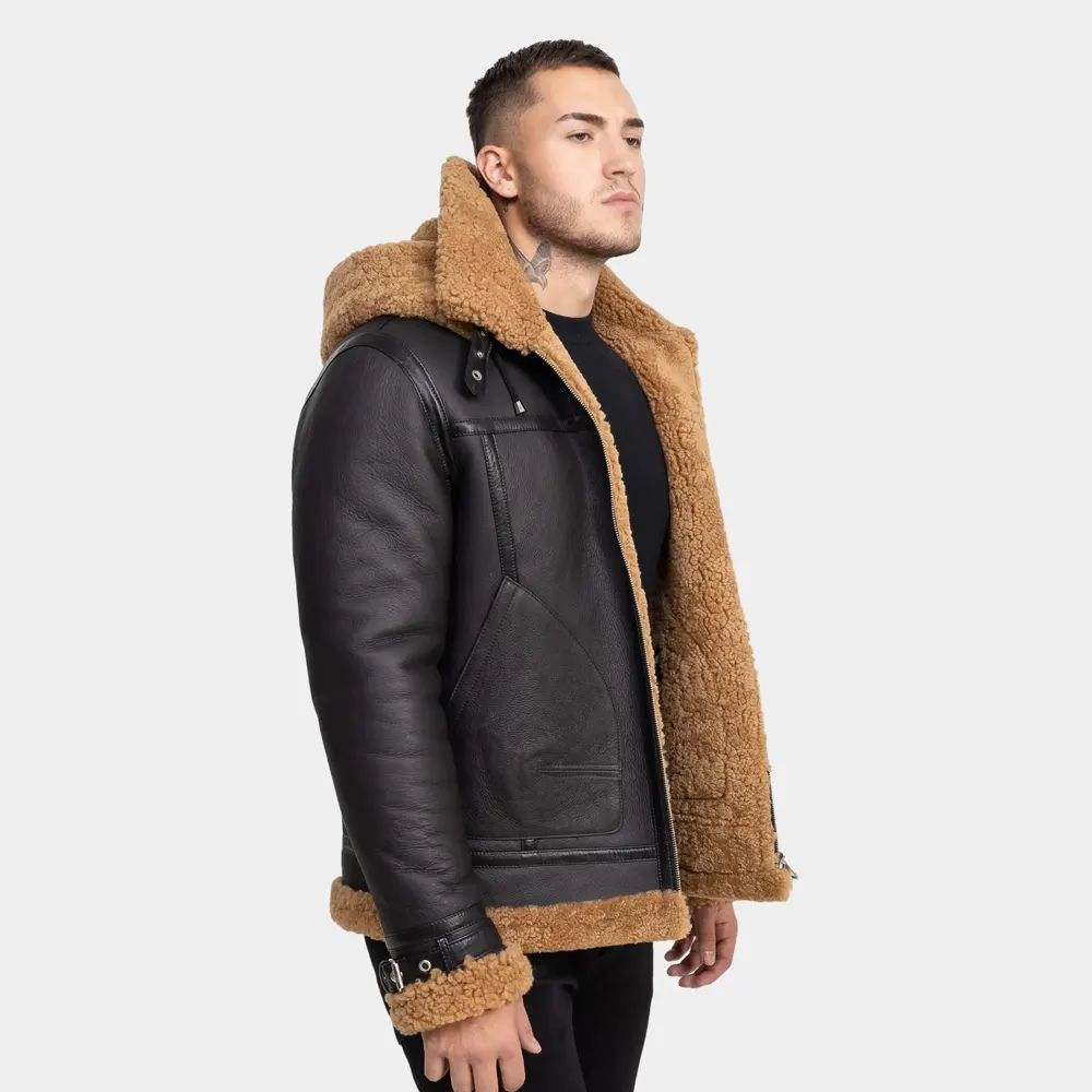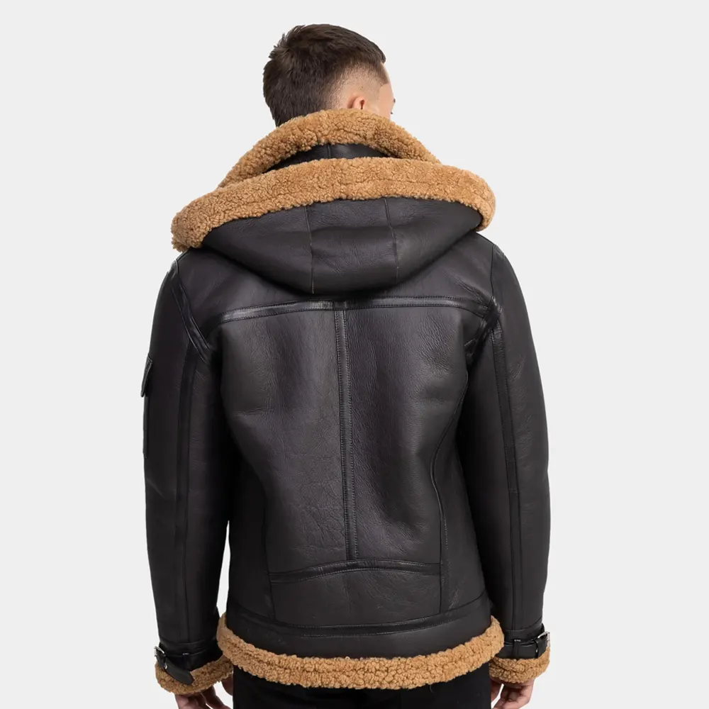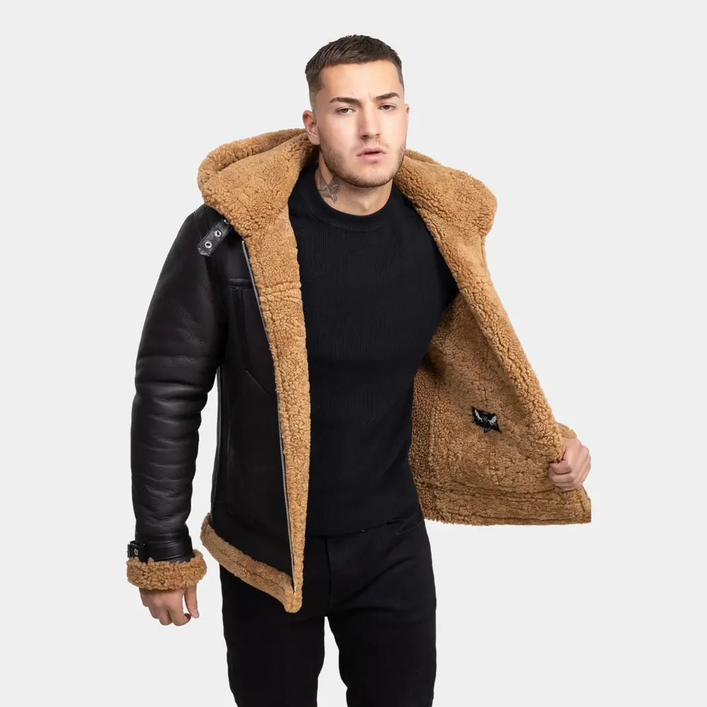 Complete Breakdown: Men’s Classy Brown Leather Shearling Hooded Aviator Jacket