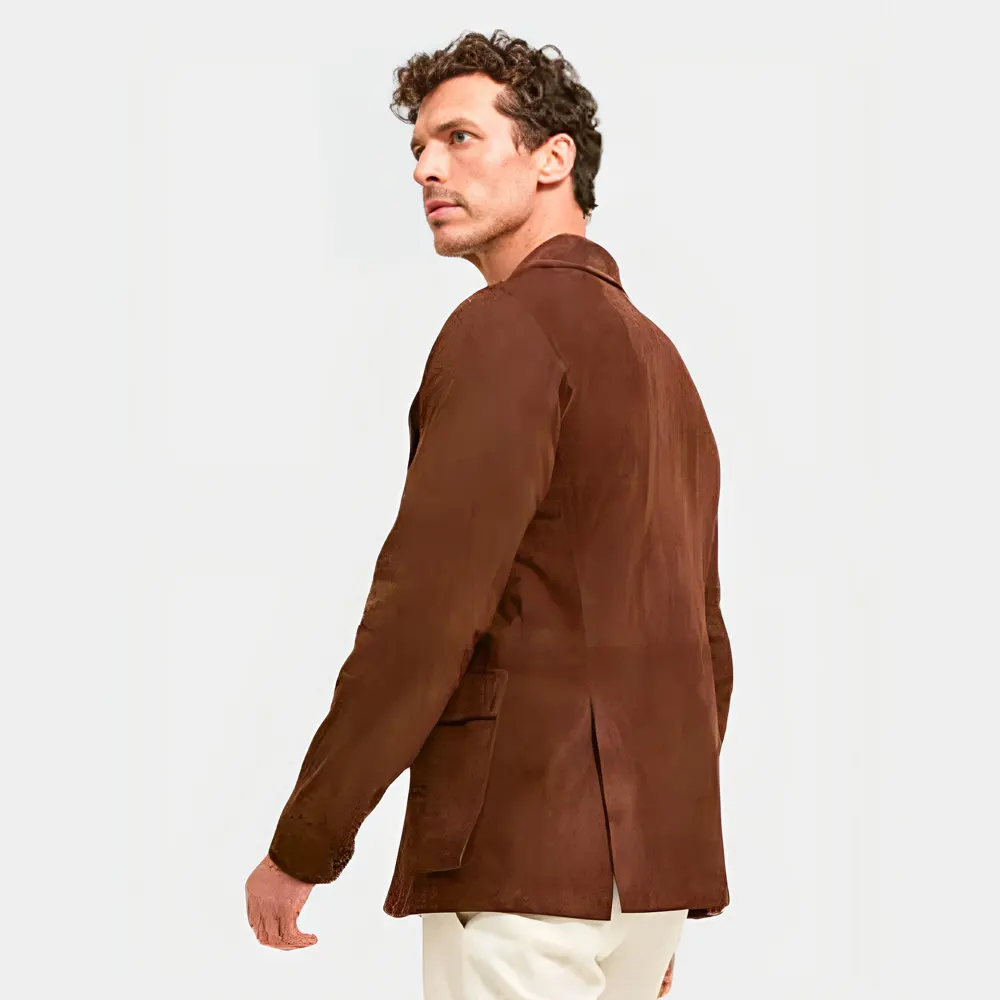 Inspired by classic safari attire, this piece brings vintage heritage into the present day with its clean lines, practical details, and refined tailoring. The lightweight design makes it ideal for spring, fall, and mild winter wear—perfect for men who want comfort without compromising on elegance. With its classic button closure and four front utility pockets, the Men’s Dark Brown Suede Safari Jacket blends form and function, giving you a piece that’s as practical as it is stylish.