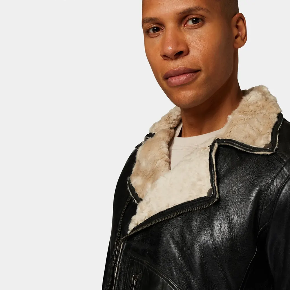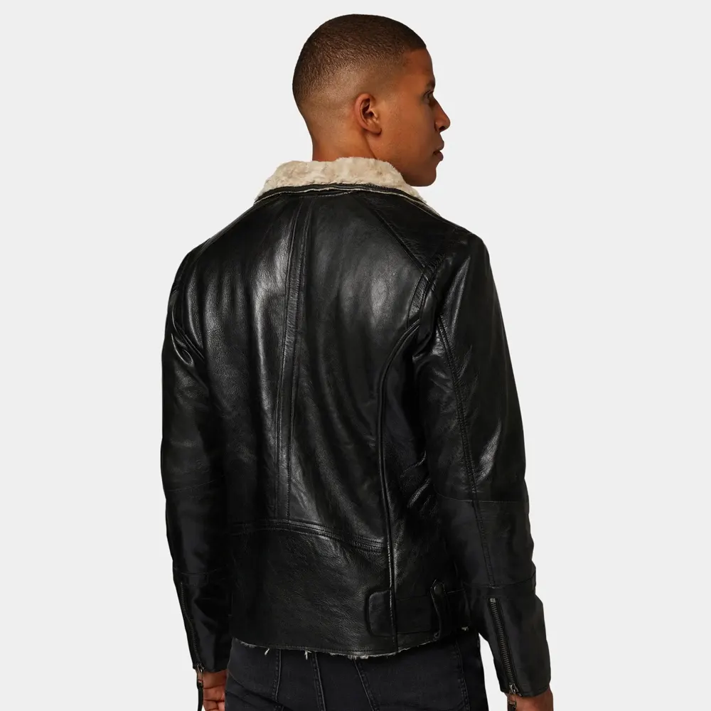 In-Depth: Fur Collar Men’s Classic Black Leather Biker Jacket
