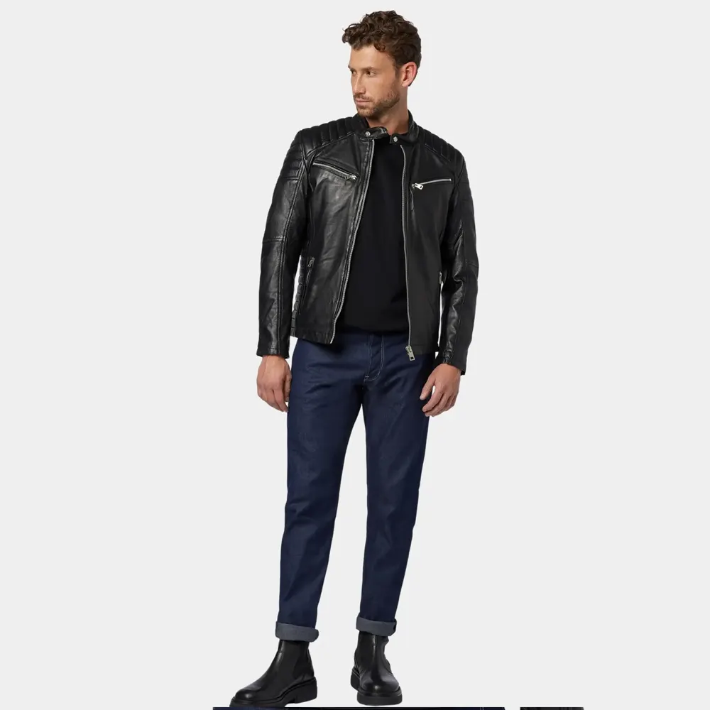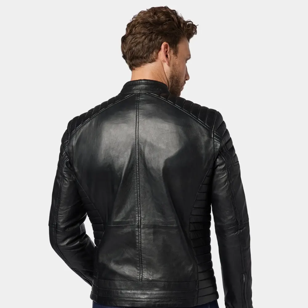 The Men’s Black Quilted Café Racer Leather Jacket isn’t just a throw-on—it’s a statement. Its form-fitting silhouette and sleek black finish make it a go-to for date nights, weekend rides, or casual Fridays. It pairs easily with jeans, boots, or even tailored trousers for a high-low mix. It also aligns well with fashion-forward staples like the Men’s Black Quilted Leather Puffer Jacket, the sporty Men’s Black Lightweight Quilted Puffer Jacket, Men’s Distressed Tan Leather Cafe Racer Jacket and the timeless Men’s Classic Dark Brown Leather Cafe Racer Jacket or Men’s Classic Charcoal Gray Leather Cafe Racer Jacket.