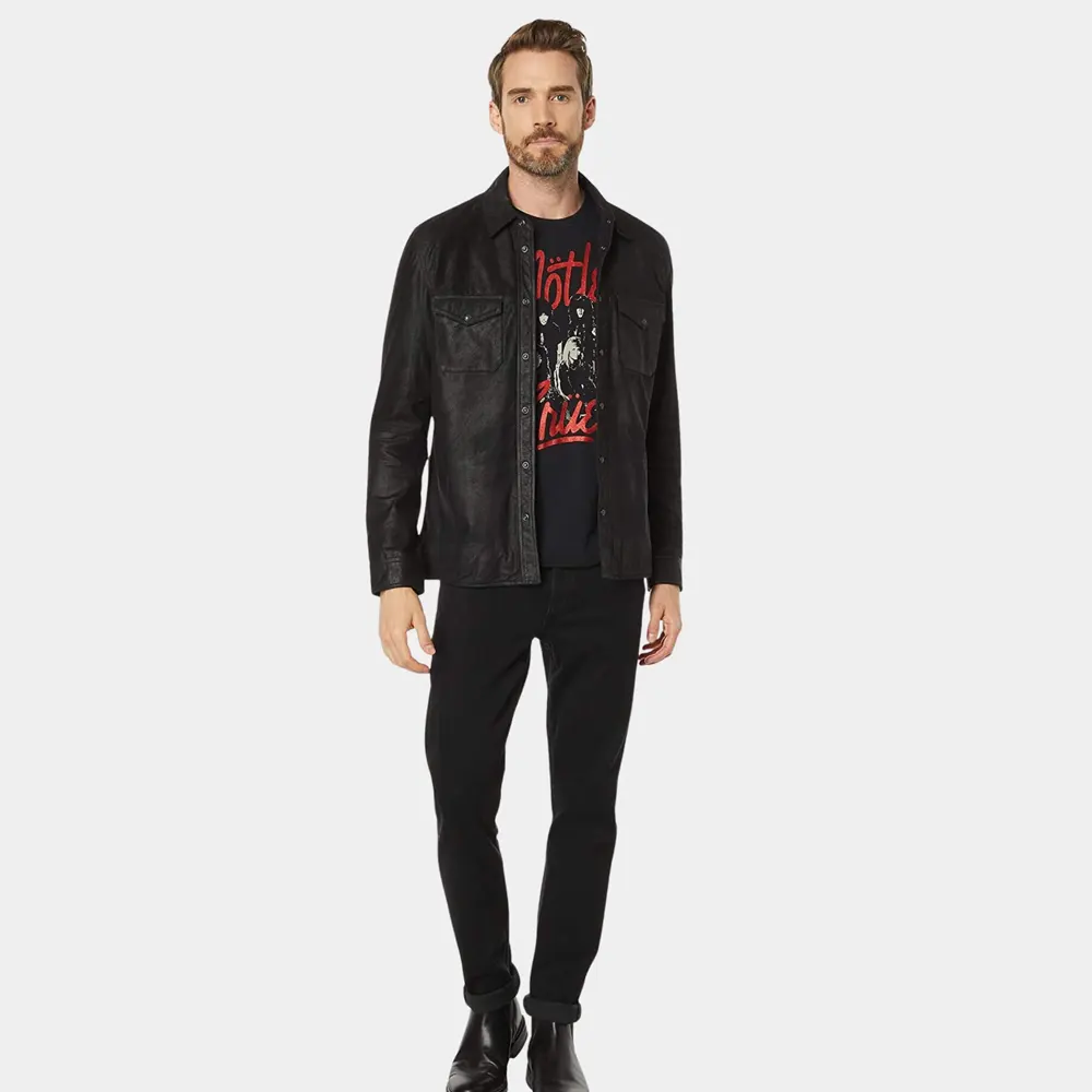 All the Details: John Varvatos Lionel Men’s Slim Fit Black Leather Shirt Jacket