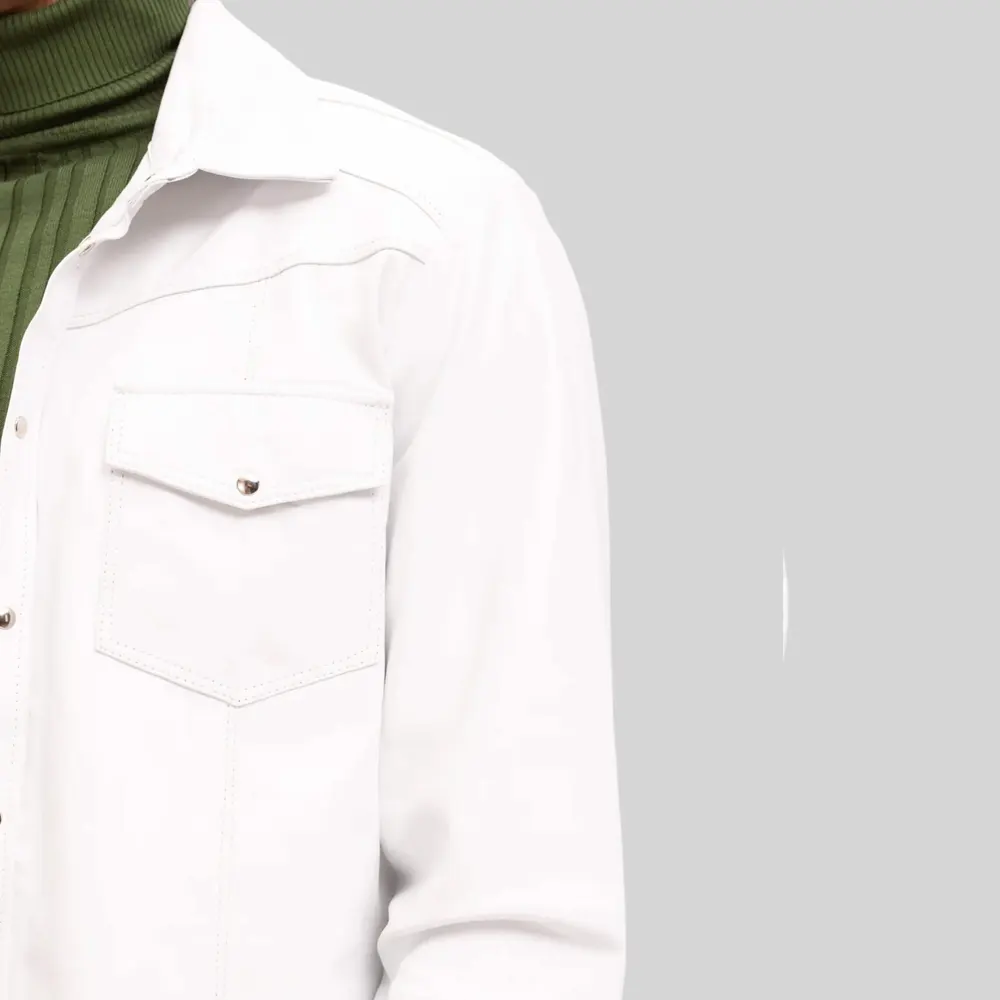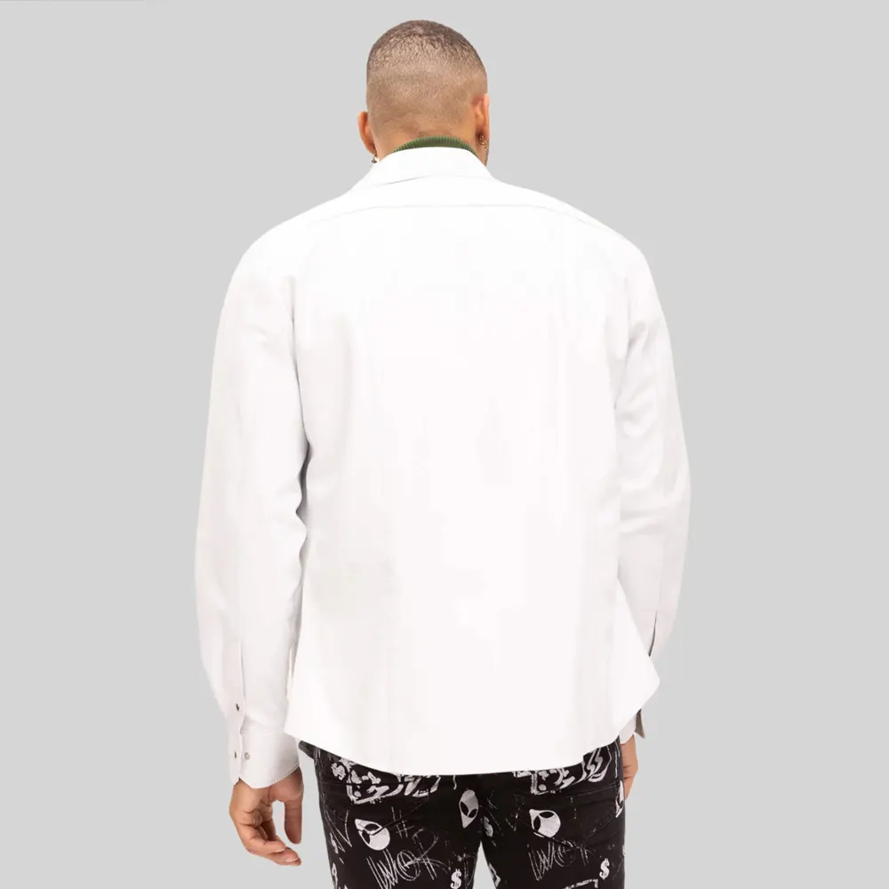 Behind the Design: Long Sleeve Men’s Lambskin White Leather Button Down Shirt
