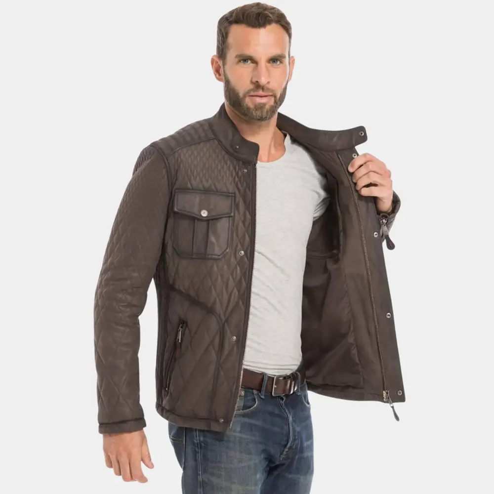 Product Overview: Leo Men’s Trucker Quilted Lining Leather Jacket